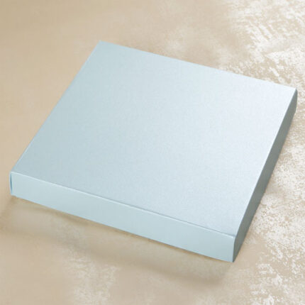 Коробочка з перламутрового блакитного паперу ідеально підійде до будь-якої блакитної або білої листівки, особливо з об'ємними брошками.