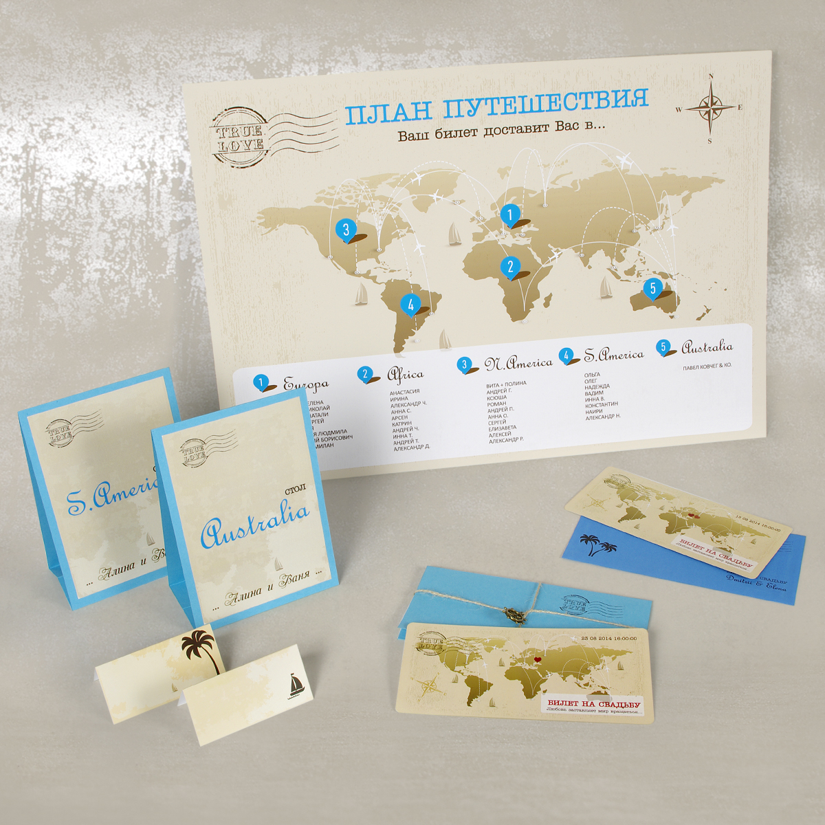 Тема подорожей оригінально підтримується і щодо розсадки. Вона виконана у стилі старої карти світу. Замість стандартних номерів столу у вигляді цифр столи будуть називатися іменами материків.