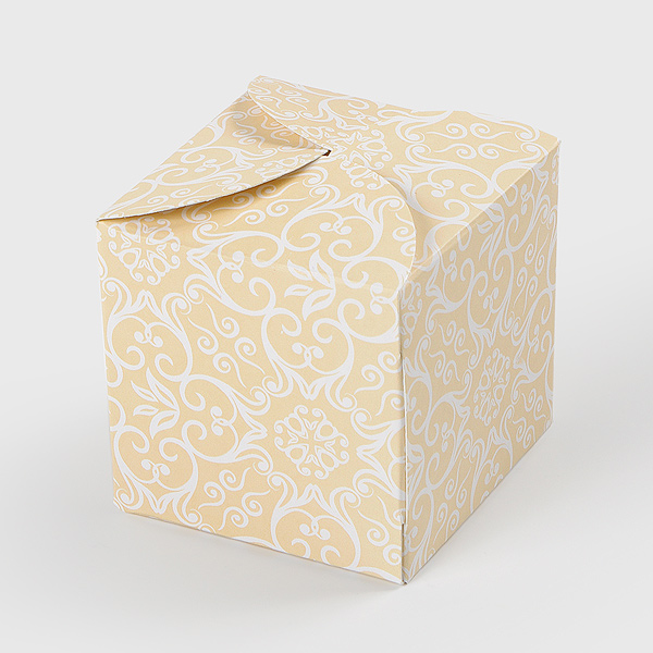 Ніжні вершково-кремові кубики-бонбоньєрки з хитромудрим візерунком закриваються оригінальними пелюстками! Красиво розклавши ці чарівні скриньки на святковому столі, і тим самим якнайкраще прикрасивши його, ви подаруєте своїм гостям не просто солодощі, завбачливо заховані там напередодні