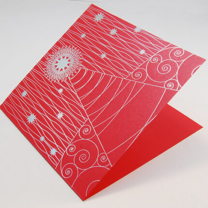 Вітальні листівки з Новим роком 2021 року це воістину казкові візерунки виконані тонкими хитромудрими лініями, зачарують усіх, хто триматиме цю листівку в руках. Вона передає радісний святковий настрій світлих новорічних та різдвяних свят. Листівка виготовлена ​​з фактурного паперу з домішкою перламутрових іскорок, які ідеально поєднуються з фольгою візерунків. Листівка зроблена так, що її можна поставити на стіл. Друк тексту здійснюється на красивій сріблясто-білій вкладиші.