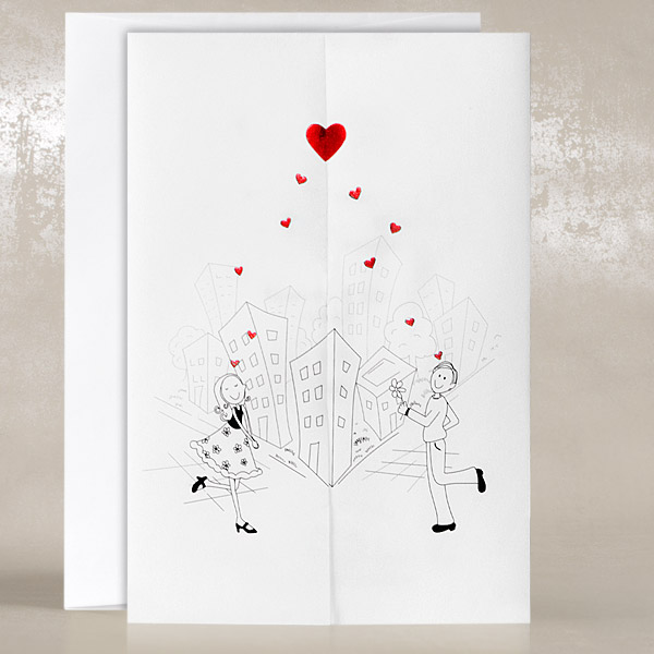 Ми назвали ці запрошення на весілля “Закохана парочка”. Кохання привело нас один до одного. Ось ще крок – і ми наречений і наречена. Тільки відкрийте запрошення і ви переконаєтесь, що це так!