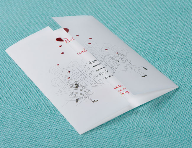 Верхня частина запрошення виготовлена ​​з матової непрозорої кальки.