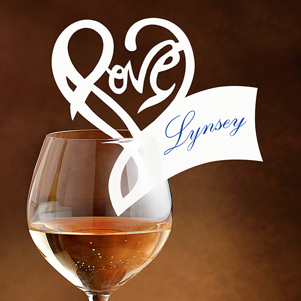 Незвичайна форма картки у вигляді слова “Love” чудово прикрасить весільний стіл.