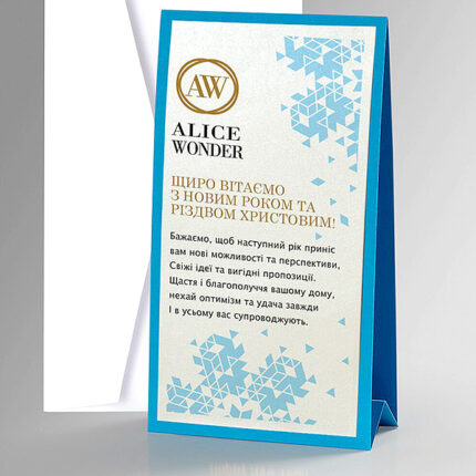 У вартість листівки не входить вартість конверта, друку на листівці, вкладці та конверті. Докладніше про види друку та вартість друку та тиснення логотипу фольгою можна дізнатися тут: Друк на новорічних корпоративних листівках.