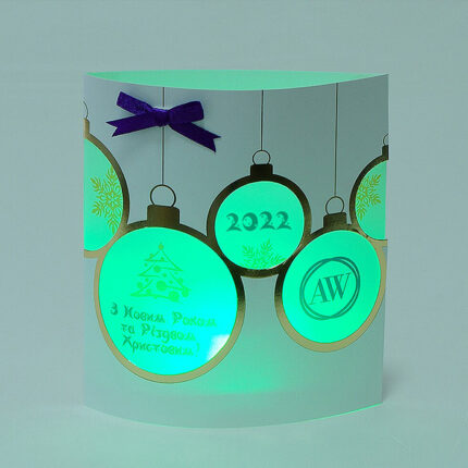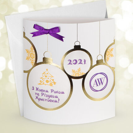 У вартість листівки не входить вартість конверта, друку на листівці, вкладці та конверті. Докладніше про види друку та вартість друку та тиснення логотипу фольгою можна дізнатися тут: Друк на новорічних корпоративних листівках.