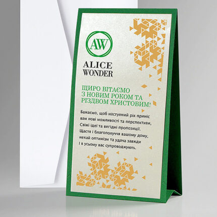 У вартість листівки не входить вартість конверта, друку на листівці, вкладці та конверті. Докладніше про види друку та вартість друку та тиснення логотипу фольгою можна дізнатися тут: Друк на новорічних корпоративних листівках.