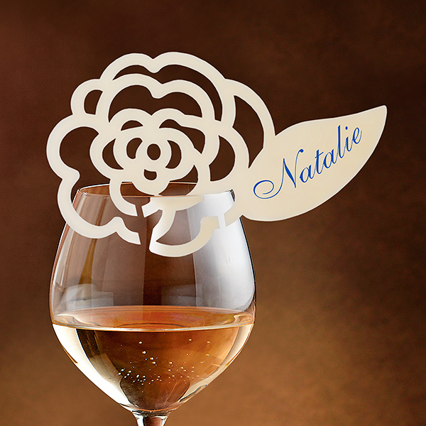 Представляємо вашій увазі найвитонченіші посадкові картки. Ажурна, мила трояндочка чудово прикрасить весільний стіл. Філігранна лазерна висічка виконана на найвищому рівні. Використовується щільний текстурний дизайнерський папір кольору Ivory. Імена гостей ви самостійно вписуєте на пелюстці трояндочки. Розмір місця для підпису – 4,5 х 2 см.