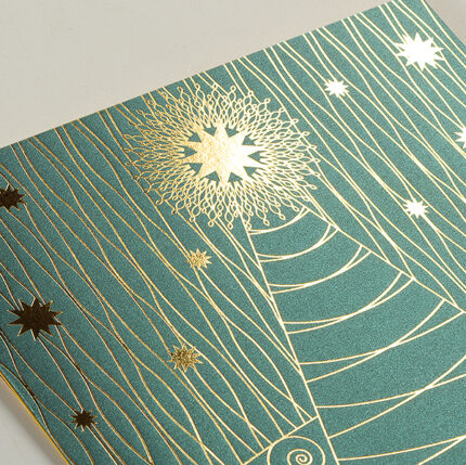 Листівка виконана з фактурного паперу з домішкою сріблястих іскорок, які ідеально поєднуються зі срібною фольгою узорів.