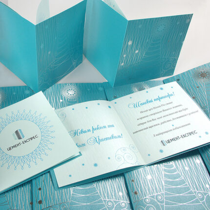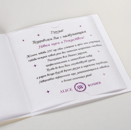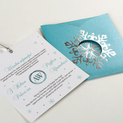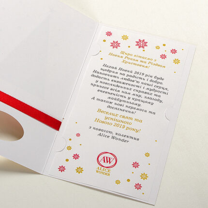 У вартість листівки не входить вартість конверта, друку на листівці, вкладці та конверті. Докладніше про види друку та вартість друку та тиснення логотипу фольгою можна дізнатися тут: Друк на новорічних корпоративних листівках.