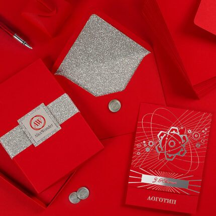 У вартість листівки не входить вартість конверта, друку на листівці, вкладці та конверті. Докладніше про види друку та вартість друку та тиснення логотипу фольгою можна дізнатися тут: Друк на корпоративних листівках.